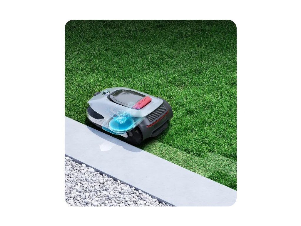 Systém OmniSense™ 2.0 s dosahem 70 m a zorným polem 360° × 59° mapuje zahradu s přesností na centimetry.