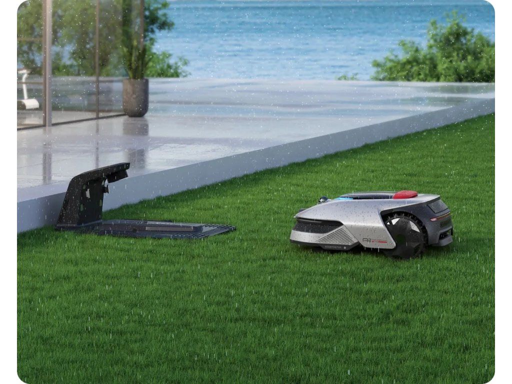 Při dešti se A2 automaticky vrátí do stanice – krytí IPX6 chrání elektroniku.